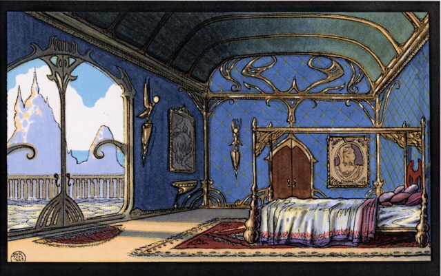 Consequently, much of the surviving production art exists in the form of marker studies. Fairly expedient, markers are great for honing one’s sense of color and composition on the fly. But you can get too used to them, sometimes to the point of attempting “finished” pieces in a medium best suited to quick visual interpretations.